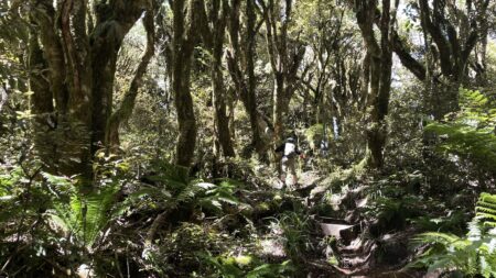 Mount Pureora Track is a popular trail that leads to the summit, it features a steep ascent but is relatively short. The track passes through dense native forest before breaking out onto the summit ridge, offering panoramic views.